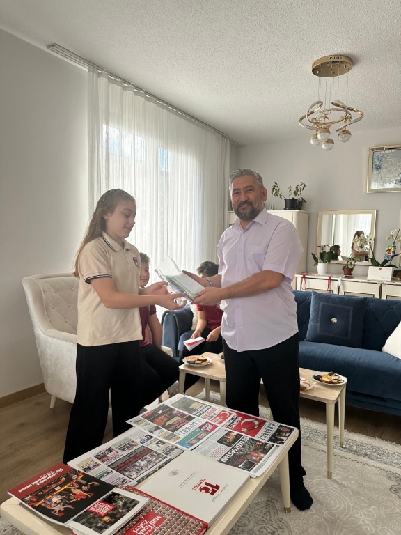 Öğrencilerimiz arkadaşlarının yazmış oldukları mektupları Gazi Mehmet Bey'e teslim ettiler.